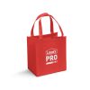 Do your part to save the environment, and save on bag fees too – imprint on our multi-use reusable grocery tote bags! These are a great promotional tool, either at trade shows or as corporate giveaways. Featuring 100gsm non-woven material with reinforced stitching and extra piping along major seams, our straps fit over most shoulders, so no matter what you’re carrying, it rests secure behind a highly visible, crisp logo! Ask about RUSH production! Complies with Prop 65.