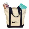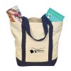 Two Tone Canvas Tote Bag (12 Ounce Cotton). 1-1/4″ contrasting self material hand straps with a top zipper closure. 6-3/4″ x 7-1/4″ stash pocket. 100% Natural cotton processed AZO-Free, with no hazardous chemicals.