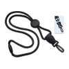 These 1/4″ polypropylene cord lanyards are equipped with a safety-breakaway attachment , a detachable plastic swivel hook and a round length adjuster ( slider) .