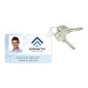 5/8″ long, plastic key card connector will help you keep your ID badge secured to your keys, just add a hole to the corner of your badge/card.