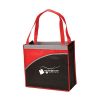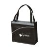 Non-woven tote bag, with a two tone design which showcases a large main compartment and curved front pocket. Great for inserting magazines / catalogs / flyers collected at shows.