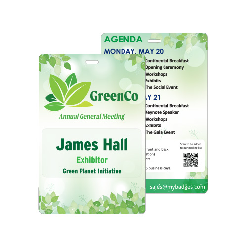 You can have any size of ecoBadge – 4″ x 6″, 4″ x 5″, 3-1/2″ x 5″, 3″ x 5″, etc. feel free to request another size.